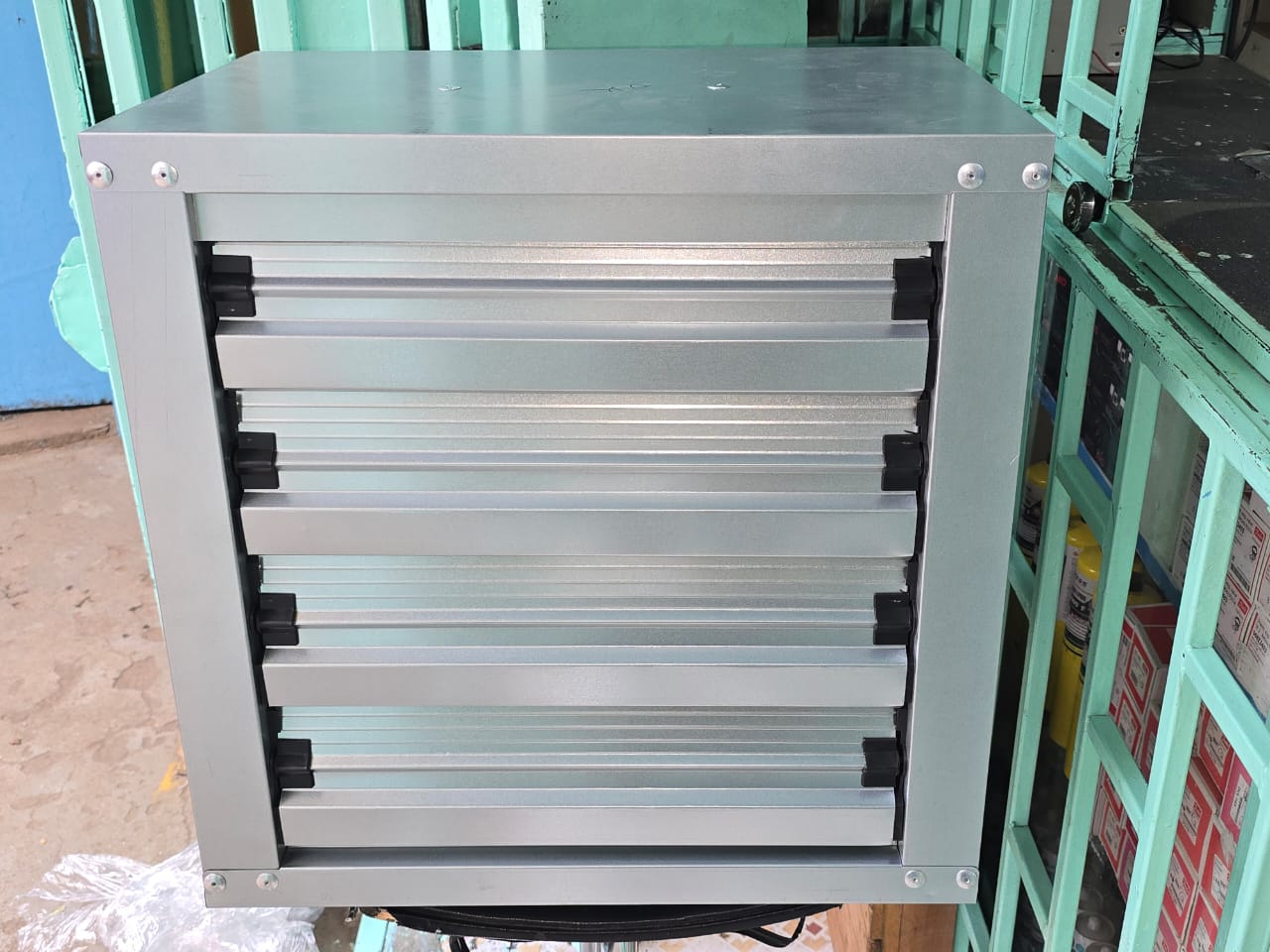 The Exhaust Fan 60x60x40 is a high-performance ventilation solution designed to efficiently remove heat, smoke, and stale air from workshops, warehouses, kitchens, gyms, and large commercial spaces. Its durable construction ensures long-lasting performance even in demanding industrial environments. The fan’s powerful motor guarantees optimal airflow, improving air quality and maintaining a comfortable working environment. Its compact 60x60x40 cm size allows easy installation while delivering superior ventilation performance. Ideal for businesses seeking reliable, energy-efficient airflow solutions.