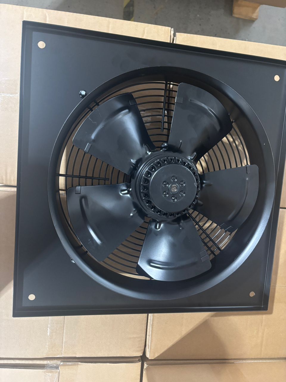 The fan features durable metal blades and a powerful motor that ensures consistent airflow while maintaining energy efficiency. Its compact square design allows for easy wall installation, making it a practical solution for tight or enclosed spaces.